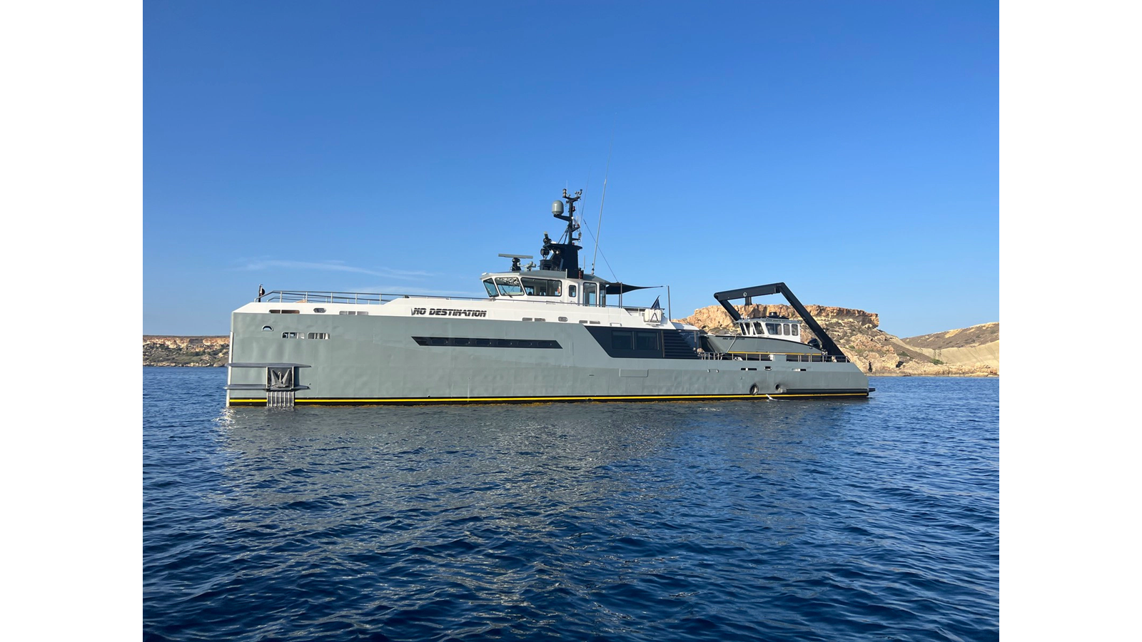 NO DESTINATION is the perfect yacht for an adventure seeker, blending the capability of a support vessel with the luxury guest spaces of a superyacht. Originally delivered in 2009 by the Dutch shipyard Damen as a Royal Navy crew support vessel, NO DESTINATION is a 37.5m (123ft) explorer yacht conversion built to Bureau Veritas (BV) unlimited navigation classification.