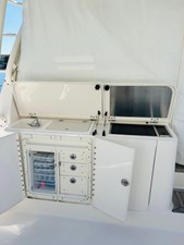 Structural and sound deadening insulation materials matched to proprietary stringer and assembly processes result in one of the quietest cabin environments in the market.Every inch of this boat exudes yacht caliber fit and finish, from its beefy grab rails, to its bow thruster, to its Corian®-countered gourmet kitchen — complete with a two-burner glass stovetop, microwave, 7.5 cubic-foot stainless steel refrigerator/freezer and fiberglass sink with hot and cold pressurized water.